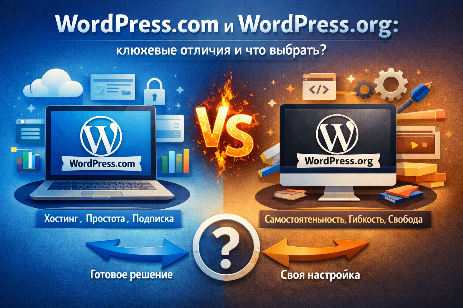 Важно: Не путайте WordPress.com (хостинг) с WordPress.org (платформа). Первый — это «садовод», который предоставляет готовые сайты, а второй — «инструмент» для создания своих проектов с нуля.